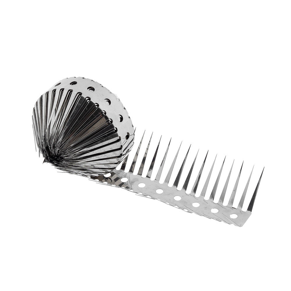 Gnaversikring med dobbelt række pigge, monteres let med papsøm, skruer eller medfølgende ståltråd.